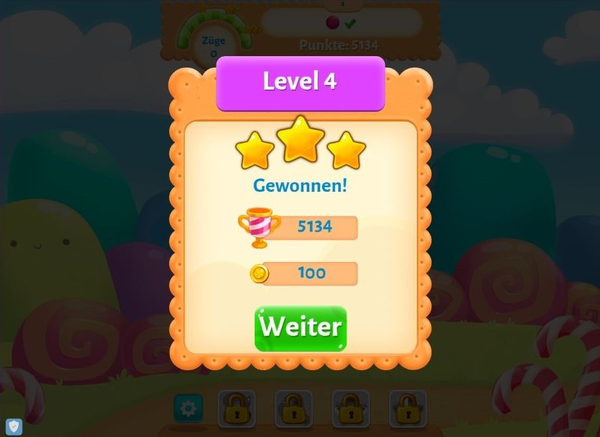 Das Prinzip bleibt das Alte: Du brauchst mindestens drei köstliche Süßigkeiten in eine Reihe zu bringen, damit sie verschwinden. Erreiche die Levelziele und versuche alle Aufgaben mit drei Sternen zu meistern. So hast du die Möglichkeit weitere Level freizuschalten. Vergiss aber nicht, dass deine Züge begrenzt sind – handle mit Bedacht! Je länger deine Reihen mit leckeren Bonbons sind, desto mehr Punkte erzielst du und kannst tolle Power-Ups freischalten. Lass dich mit Bonbons, Waffeln und Truhen voller Punkte überraschen. Nutze mächtige Booster und schlage den High Score in jedem Level. Je weiter du kommst, desto schwieriger wird es. Bist du dich bereit dieser Herausforderung zu stellen?