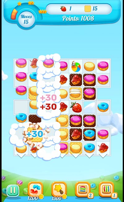 Häuser aus Lebkuchen, Bäume aus Fruchtgummi, Flüsse aus Zuckerguss und Brücken aus Schokolade: Komm und tritt ein in die honigsüße Welt von Cookie Crush 3! Lass dir vom Gingy, dem niedlichen Lebkuchenmann, sämtliche Kniffe und Tricks zeigen und kombiniere dich durch über 700 Level für stundenlangen Drei-gewinnt Spaß.