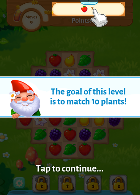 Dabei müssen wieder verschiedene Gegenstände angeordnet werden, sodass Reihen aus mindestens drei Blumen oder Früchten entstehen. Jedes Level enthält ein bestimmtes Ziel, welches zu erreichen gilt. Wenn mindestens drei Gegenstände richtig angeordnet wurden, wird die Reihe aufgelöst und du erhältst Punkte. Deine Geschicklichkeit wird mit zusätzlichen Punkten belohnt und du steigst immer weiter im Level auf. Doch Vorsicht ist geboten, denn deine Züge sind begrenzt!