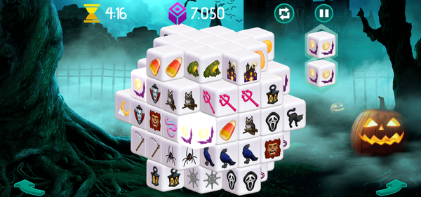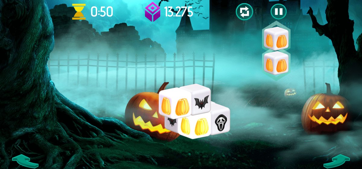 Tauche ein in die neue schaurige Mahjongg Dimensions Variante zu Halloween. Monster Mahjongg Dimensions kannst du jetzt kostenlos und ohne Registrierung auf RTLspiele online spielen. Wenn du ein begeisterter Fan des klassischen Mahjongg bist, wird dich Monster Mahjongg Dimensions mit Sicherheit noch mehr begeistern und in eine schaurige Halloween-Stimmung versetzen. Hier folgst du dem altbewährten Spielprinzip, indem du auf die gleichen Steine klickst, die zwei freie gegenüberliegende Seiten haben, um sie zu entfernen und dabei Punkte zu sammeln. Diese Steine sind passend zur Halloween-Season: Fledermäuse, Vampire, Geister und viele weitere gruselige Motive, die dir ein gespenstisches Ambiente erschaffen. Doch die wahre Faszination liegt im Würfel: Bewege und drehe ihn geschickt, um die perfekten Paarungen zu finden. Die Pfeile findest du unten rechts und links.