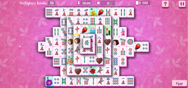 Muttertags Mahjong Solitaire glänzt vor allem durch seine wunderschöne Optik, die sicher nicht nur Mamas begeistern wird. 10 Minuten hast du Zeit, um das Spielfeld zu leeren. Das gelingt dir, indem du zwei gleiche Spielsteine entfernst. Mahjongspiele gehören zu den beliebtesten Spielen auf RTLspiele – sicherlich auch deshalb, weil sie die optimale Kombination zwischen Denksport und Entspannung liefern. Darum: Gönn dir eine Pause mit einer Runde Muttertags Mahjong Solitaire!